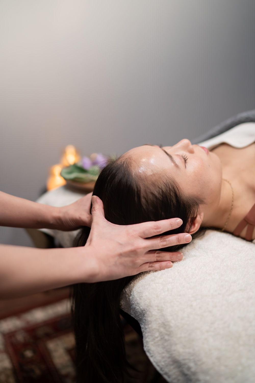 マルマというツボのようなエネルギーポイントを優しく撫でるように施術し、不調箇所の滞りを巡らせ整えていく癒しの施術です。